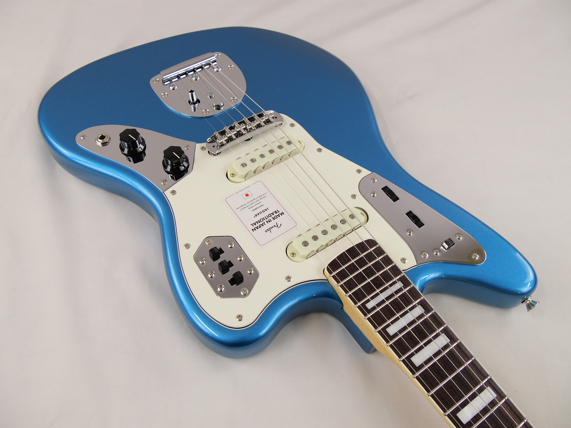 Made in Japan Traditional Late '60s Jaguar®はグロスフィニッシュのバスウッドボディに、ヴィンテージスタイルの22フレットを採用し、9.5インチラジアスの”U” シェイプメイプルネックがTraditionalシリーズならではのクラシカルな演奏製を提供します。フローティングトレモロテイルピース付きの6サドル式ヴィンテージスタイルブリッジ、そしてTraditionalシリーズのために選定されたオリジナルピックアップはリアルで音楽的なヴィンテージトーンを奏でます。 本製品は、60年代の後期から採用されていた、ネックにバインディングが施されブロックのポジションインレイを採用した製品のリイシューです。 堅実なギタークラフトマンシップと、プレイヤーのニーズに柔軟に対応する答えが、本シリーズに反映されています。